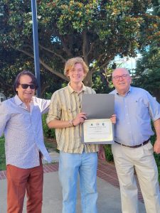 On Monday, 24 June 2024, COL Jim Bonato, Chair of the Scholarship Committee and MG Dan Balough presented Jett with the League scholarship certificate and a $5000 check on the steps of the California State Capitol. It was a warm but pleasant evening in the River City for the short but evocative ceremony. Also, present were Jett’s great grandfather and his grandparents CSM Art and Laura Moore.